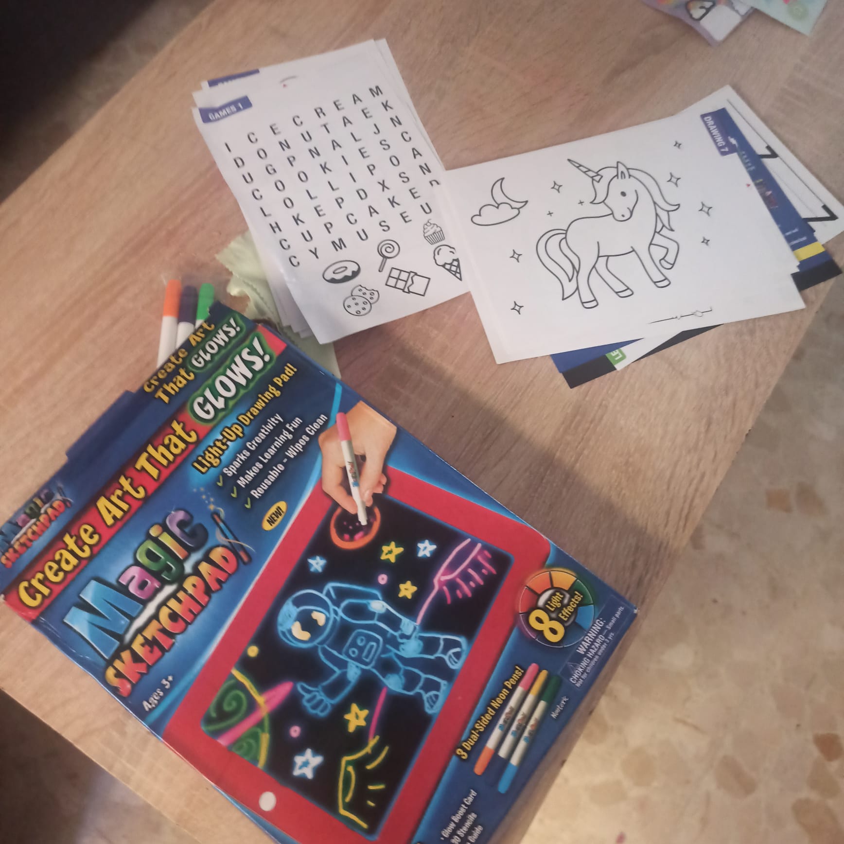 Ya ha llegado, a mis peques les ha encantado sobretodo lo de pintar a oscuras.